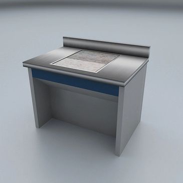 Área para balanza con sistema anti-vibratorio de: 60, 70,80, 90 cm de frente.