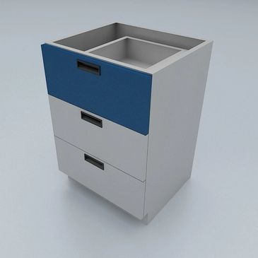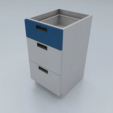 muebles para laboratorios altos (86 cm de altura) archivero de 3 cajones (uno de archivo) de: 45, 50, 60, 70, 80, 90, y 100 cm. de frente.