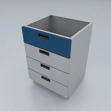 muebles para laboratorios altos (86 cm de altura) con 4 cajones de extensión total de: 45, 50, 60, 70, 80, 90 y 100 cm de frente.